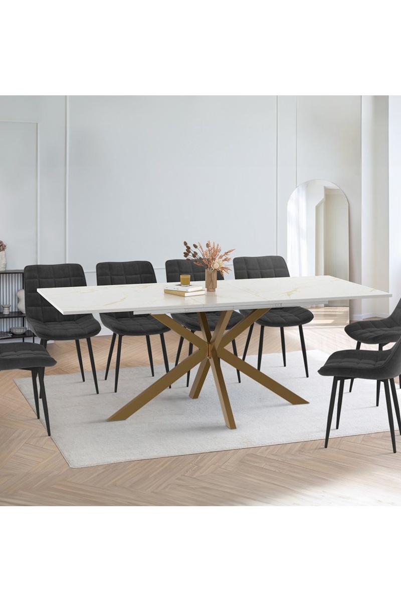 Mesa de comedor extensible Glam - Imitación mármol y dorado