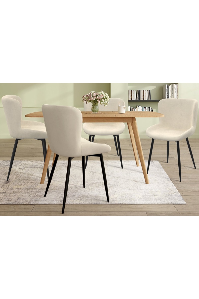 Sillas Taylor de terciopelo color crema y patas de metal negras - Pack de 4