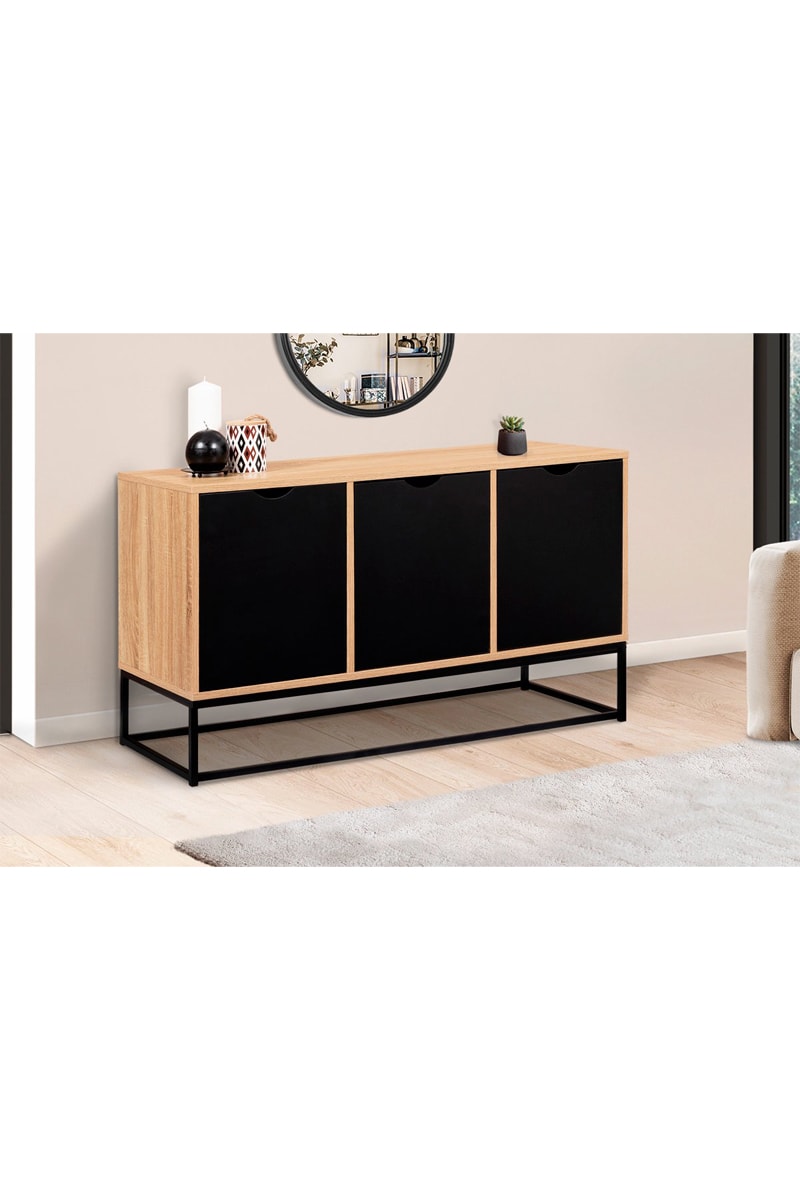 Aparador bajo de 3 puertas Manhattan - Imitación madera y negro