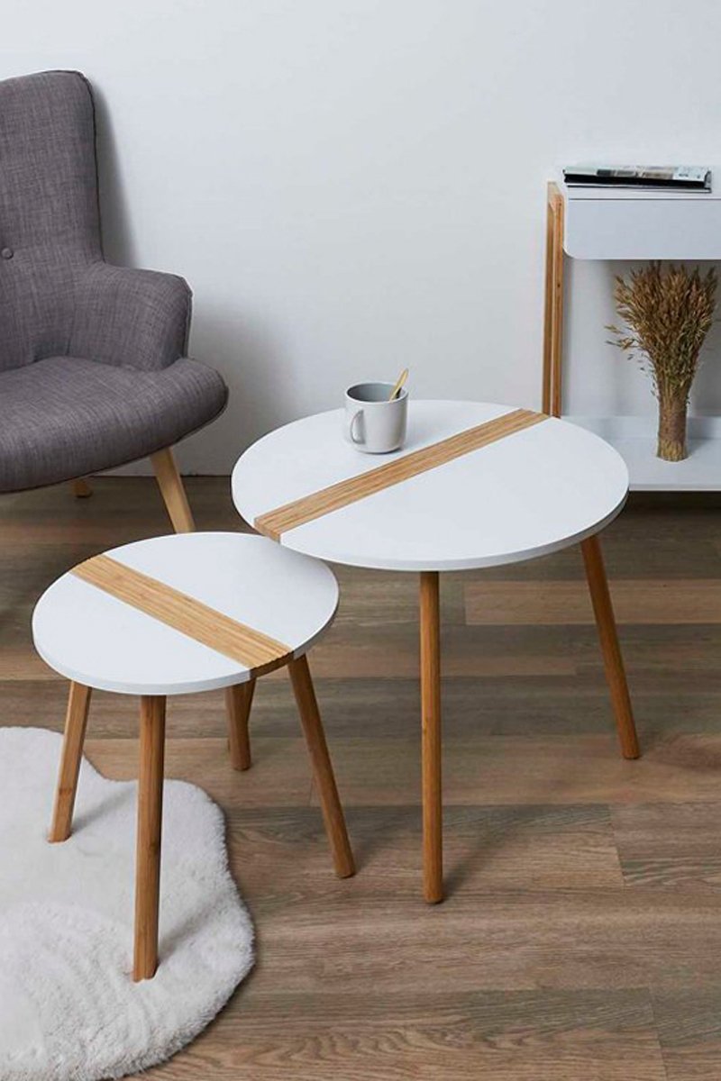 2 mesas de centro encajables - Blanco y natural