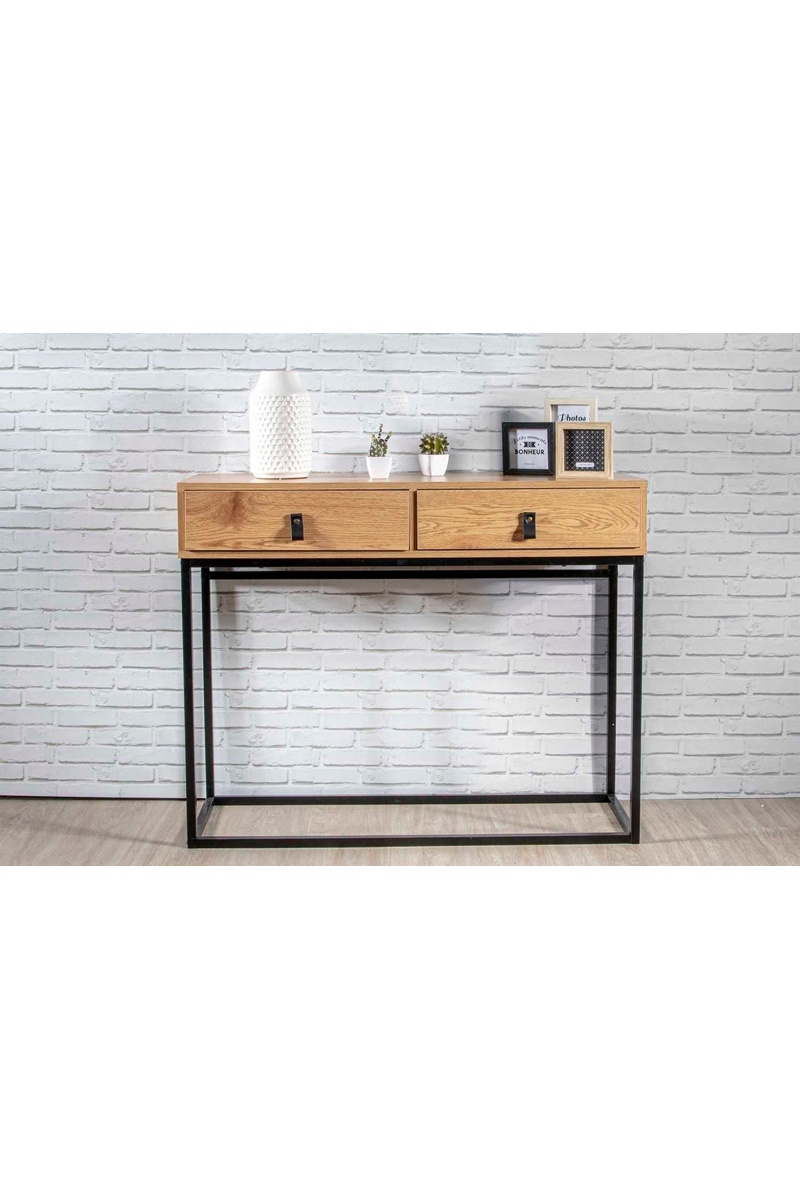 Consola de 2 cajones Abbott - Natural y negro