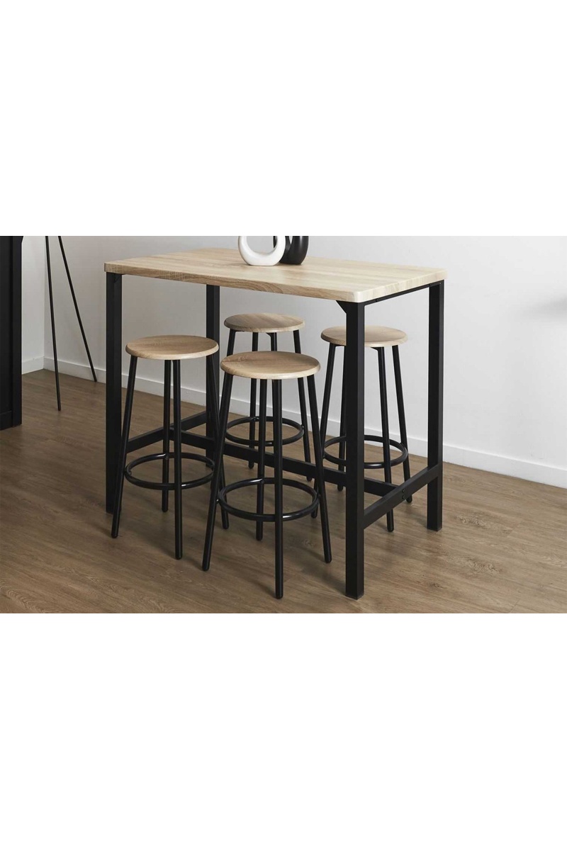 Mesa alta y 4 taburetes Loka - Imitación madera