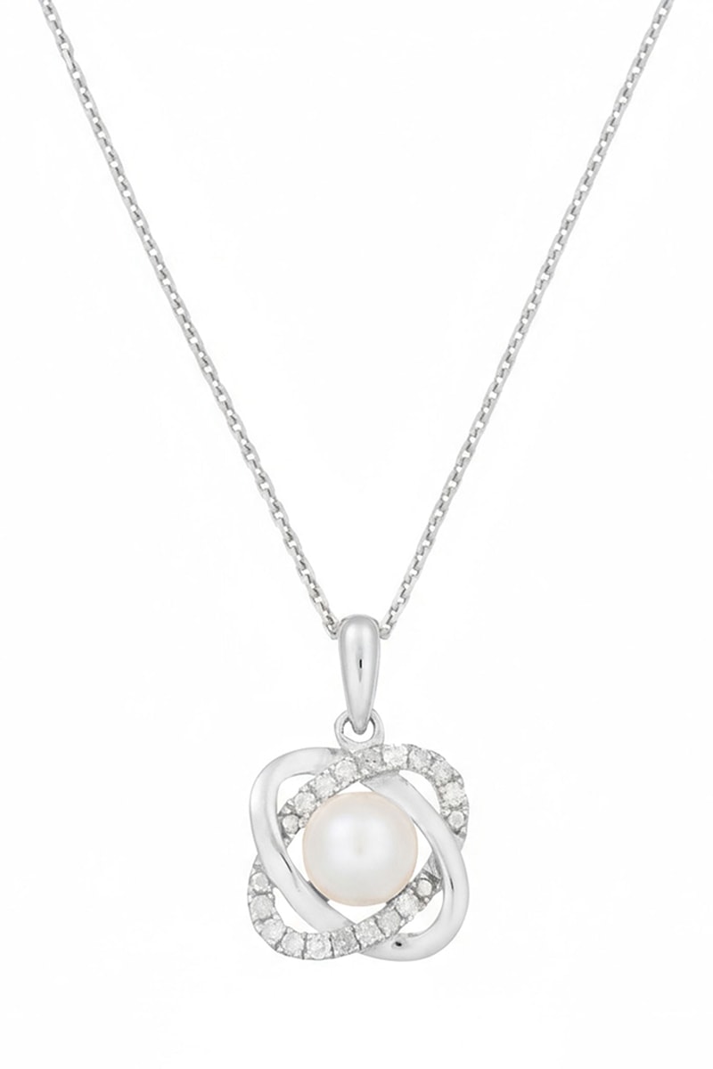 Colgante de oro blanco con 24 diamantes y una perla de imitación.