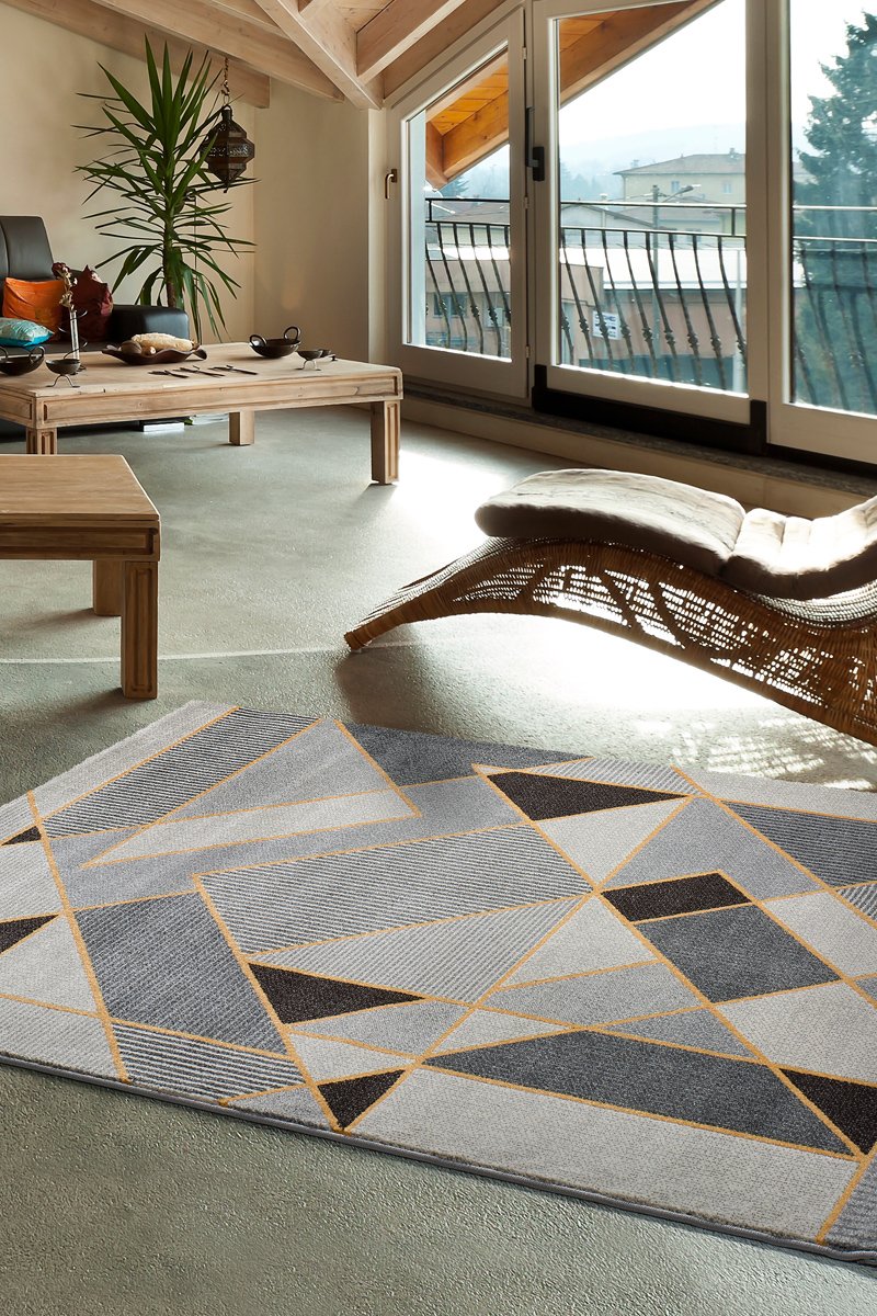 Alfombra Leo - Gris y amarillo