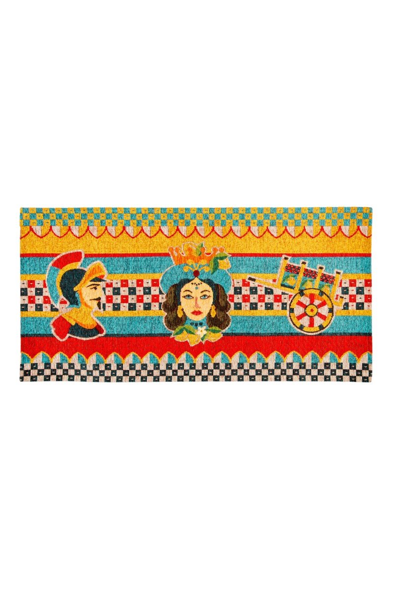 Alfombra - Naranja y celeste - 55 x 110 cm
