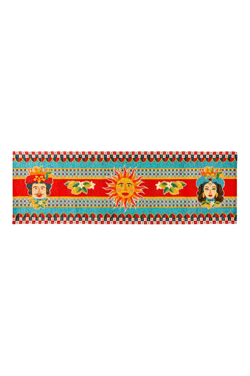 Alfombra - Rojo y celeste - 55 x 180 cm