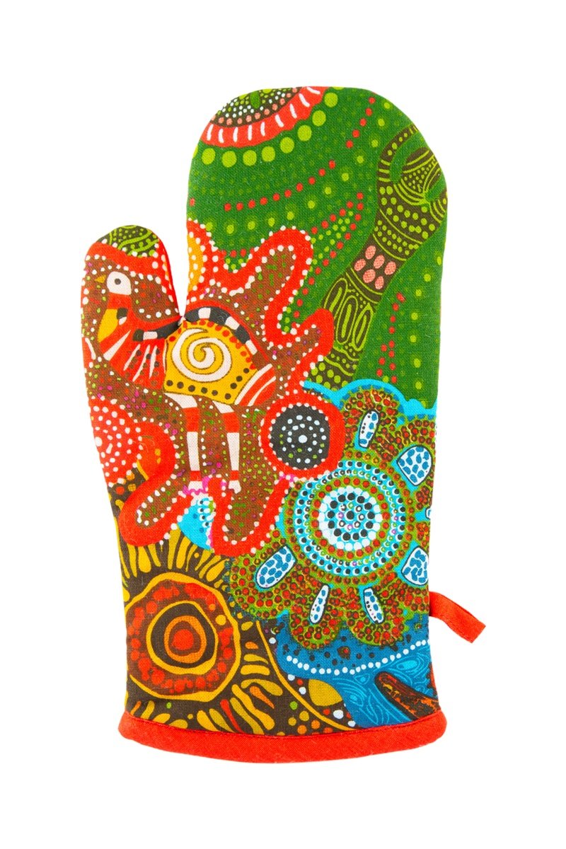 Manopla de cocina Aboriginal - Rojo y verde
