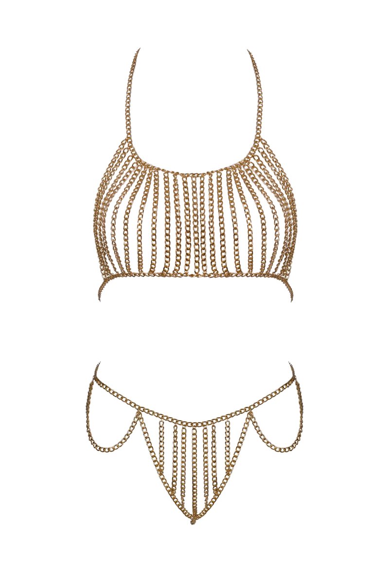 2 cadenas corporales, una de ellas con forma de sujetador y una con forma de tanga.