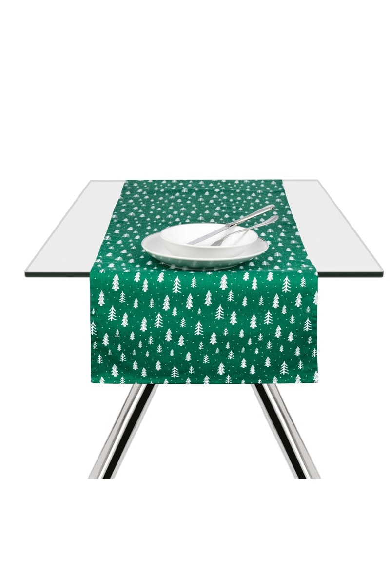 Camino de mesa y servilletas de tela Green Winter - Verde - 145 x 45 x 0,1 / 45 x 45 x 0,1 cm