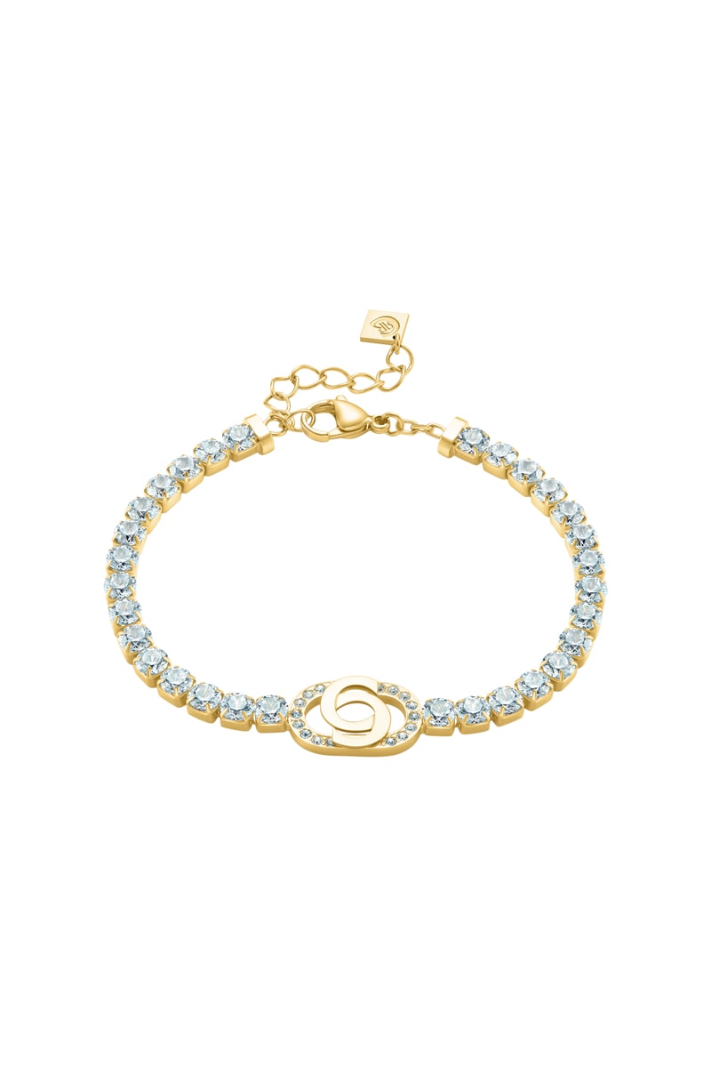 Pulsera chapada en oro amarillo con cristales.
