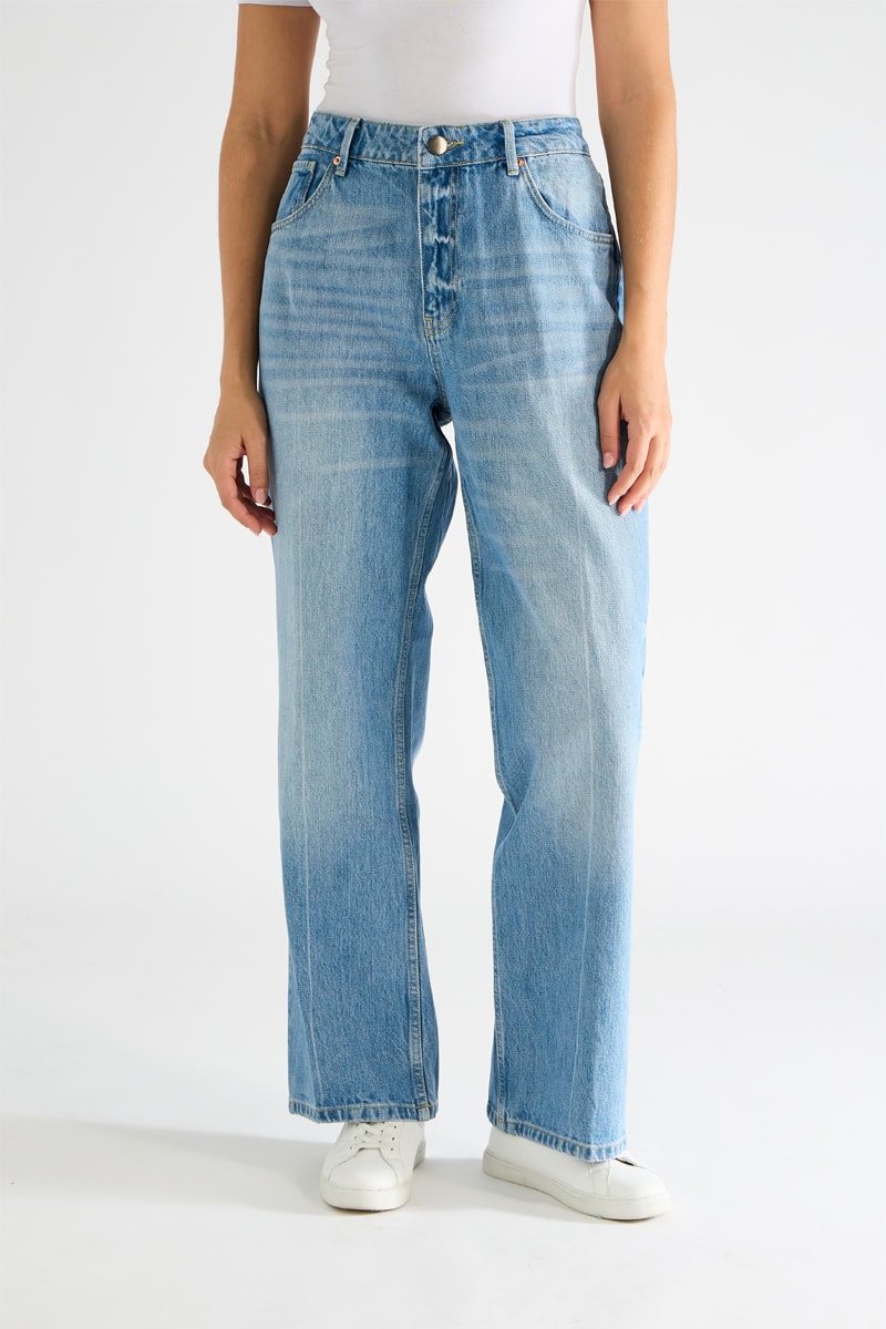 Vaquero de algodón orgánico de tiro alto - Azul claro