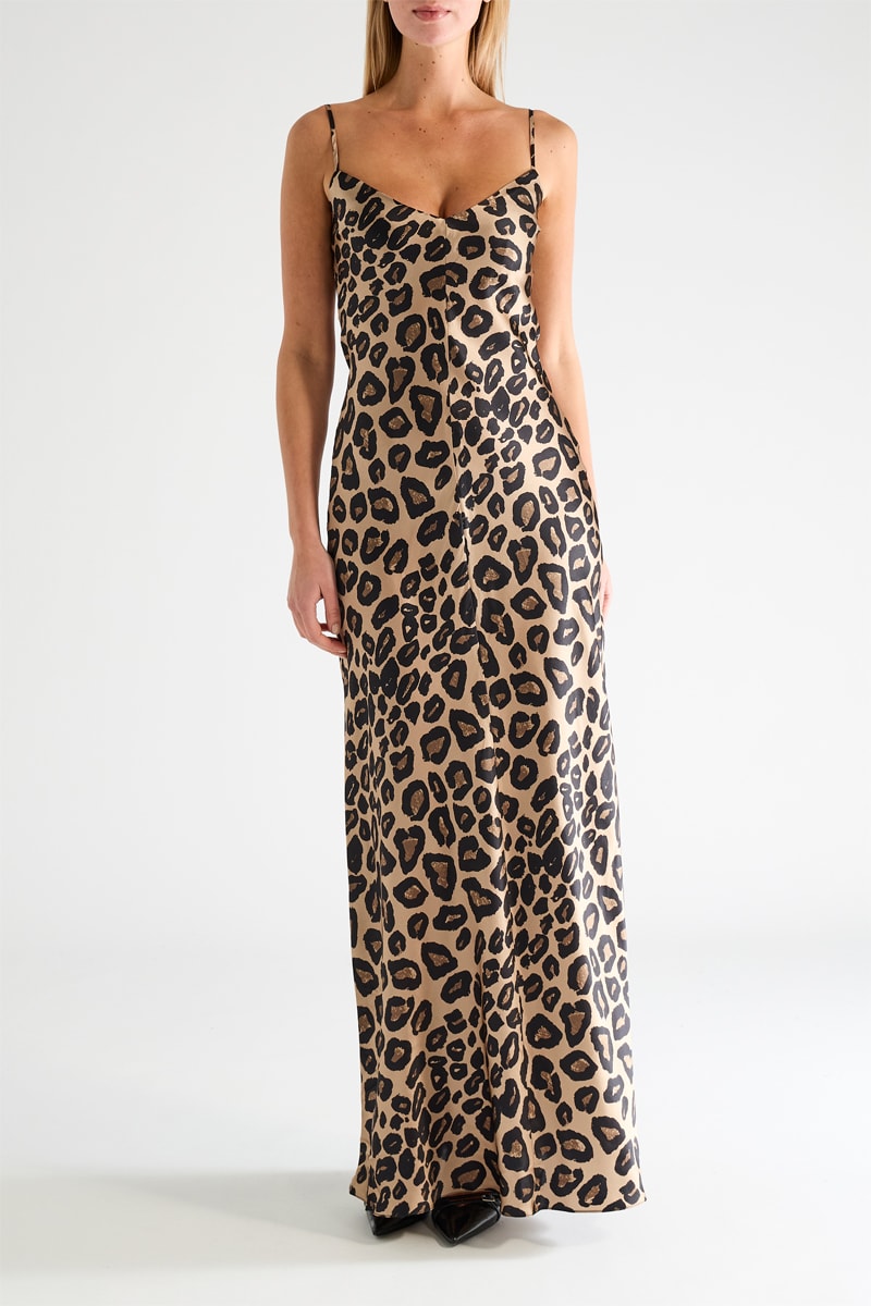 Vestido largo de seda - Marrón