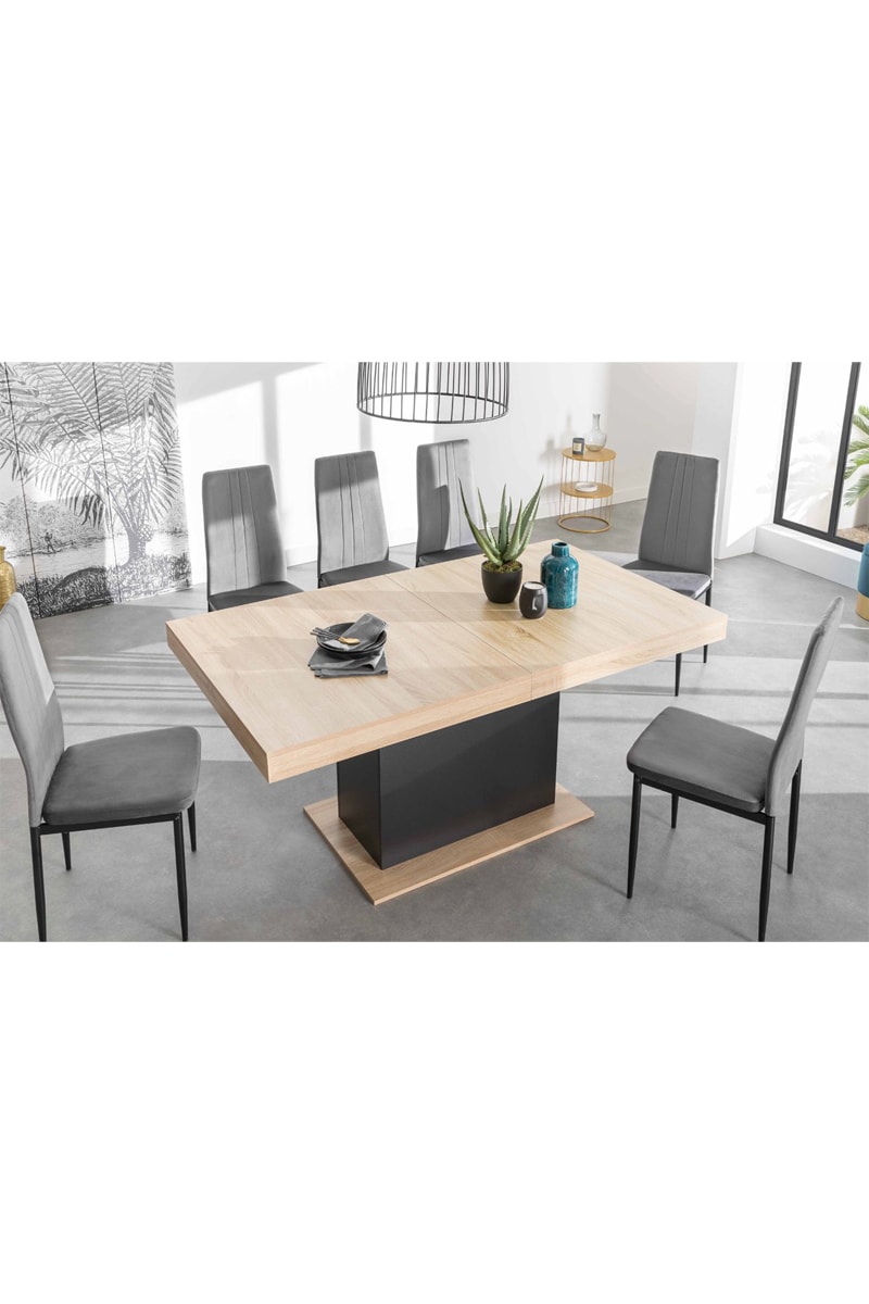 Mesa de comedor extensible Tania - Imitación madera y negro
