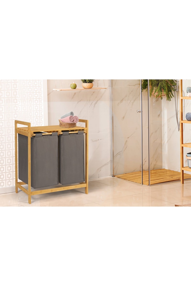 Cesta doble de bambú para ropa.