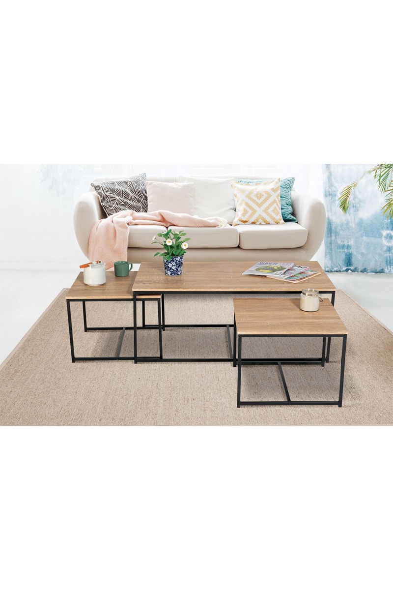 3 mesas de centro, 2 de ellas pequeñas y 1 grande.