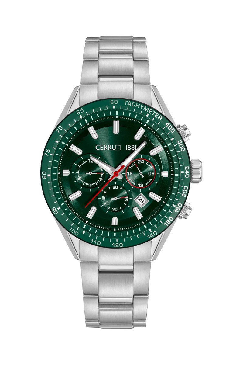 Reloj de cuarzo de acero Vedelago - Taquímetro - Plateado y verde oscuro