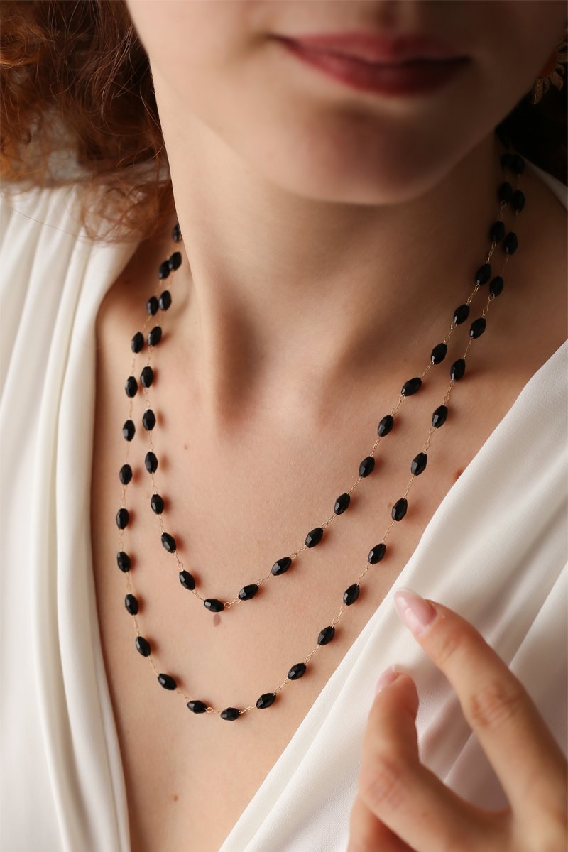 Collar de doble vuelta chapado en oro amarillo con ónices.