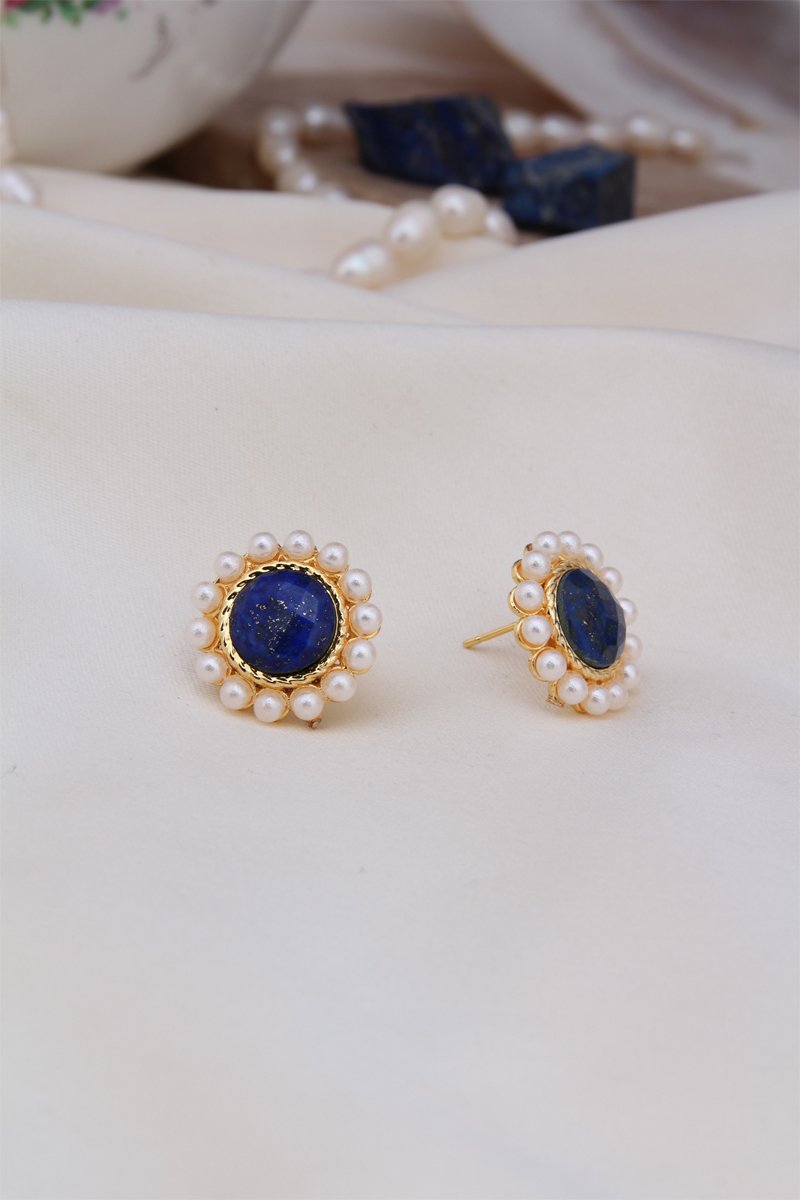 Dormilonas bañadas en oro fino amarillo con lapislázuli y perlas cultivadas.