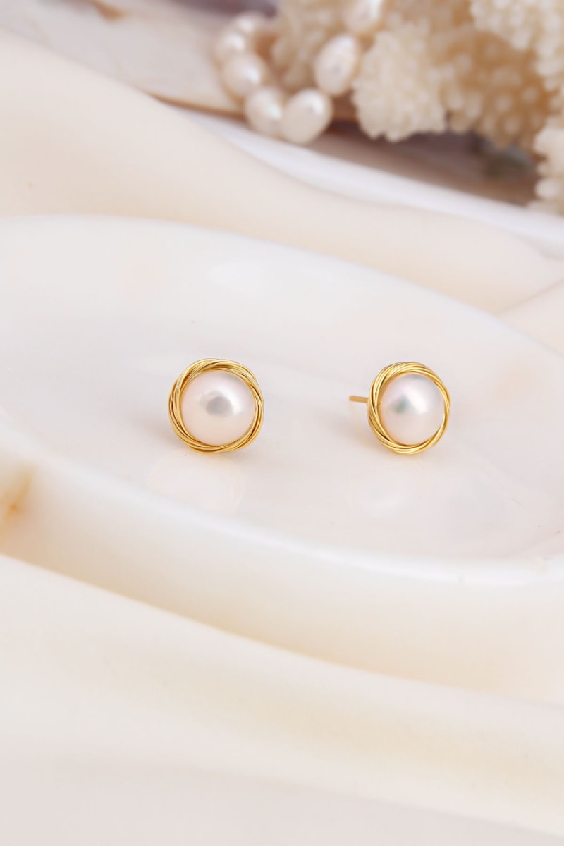 Dormilonas chapadas en oro amarillo con una perla cultivada.