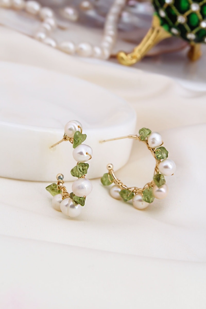 Criollas chapadas en oro amarillo con ágatas y perlas de imitación.