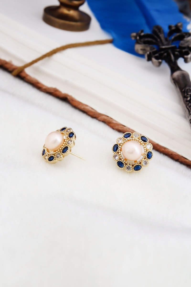 Dormilonas chapadas en oro amarillo con perlas cultivadas.