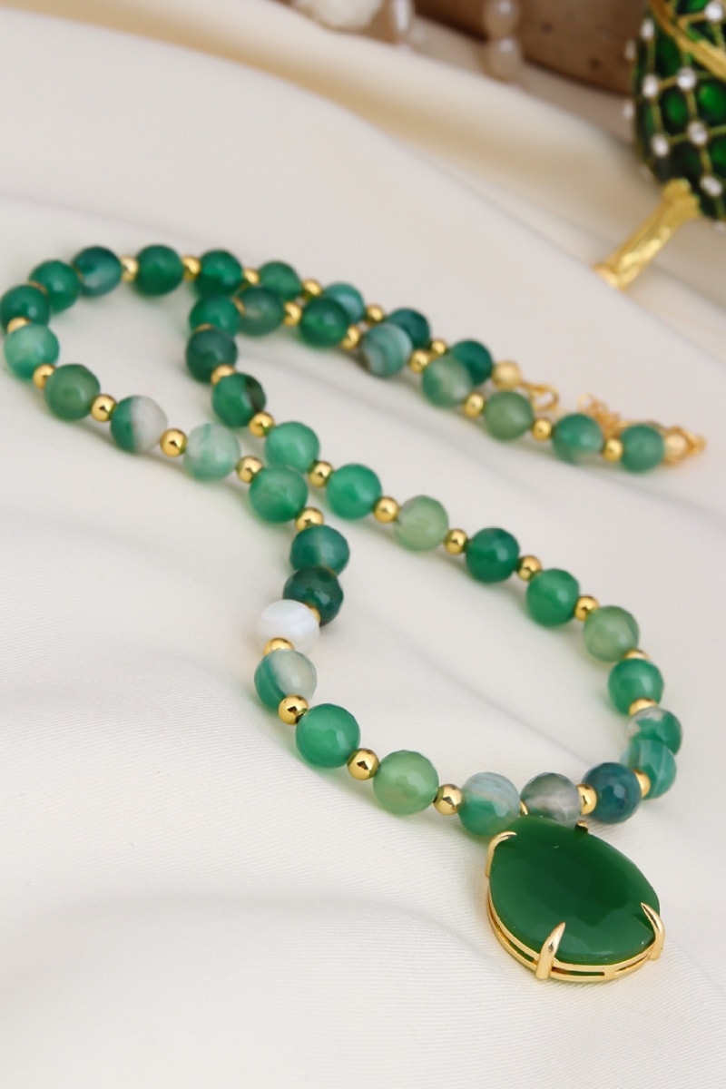 Collar - Chapado en oro amarillo y ágatas