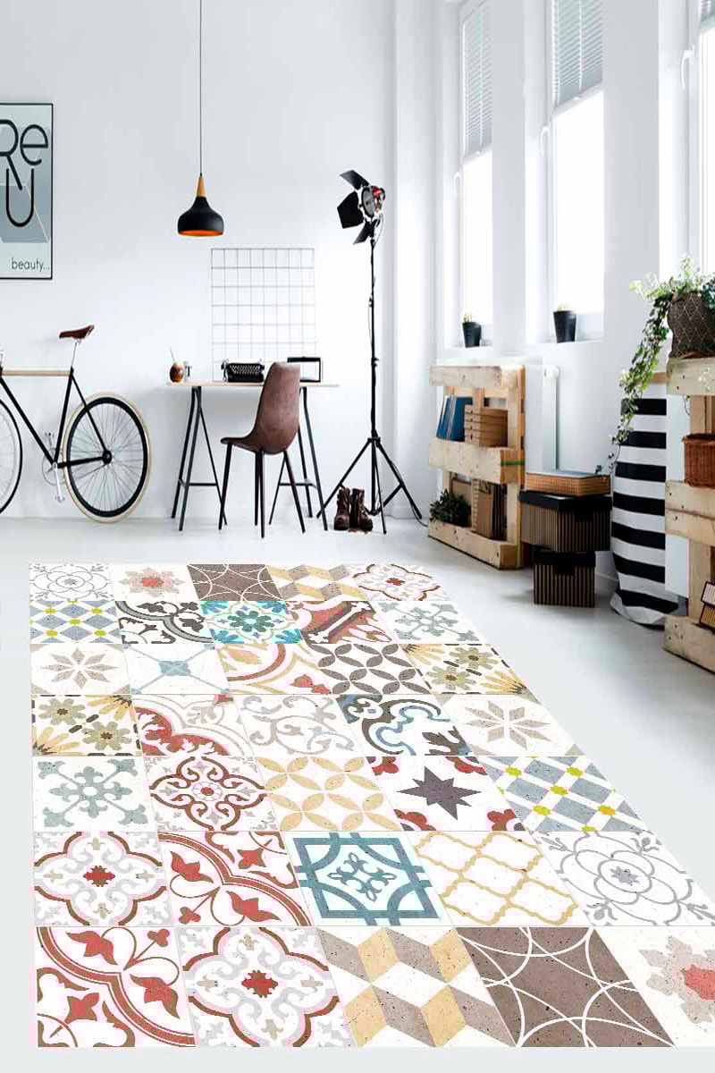 Alfombra vinílica Home Tiles Vintage 4 - Celeste y rojo