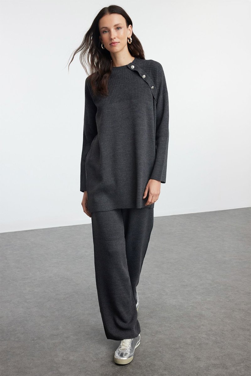 Cárdigan largo y pantalón - Gris