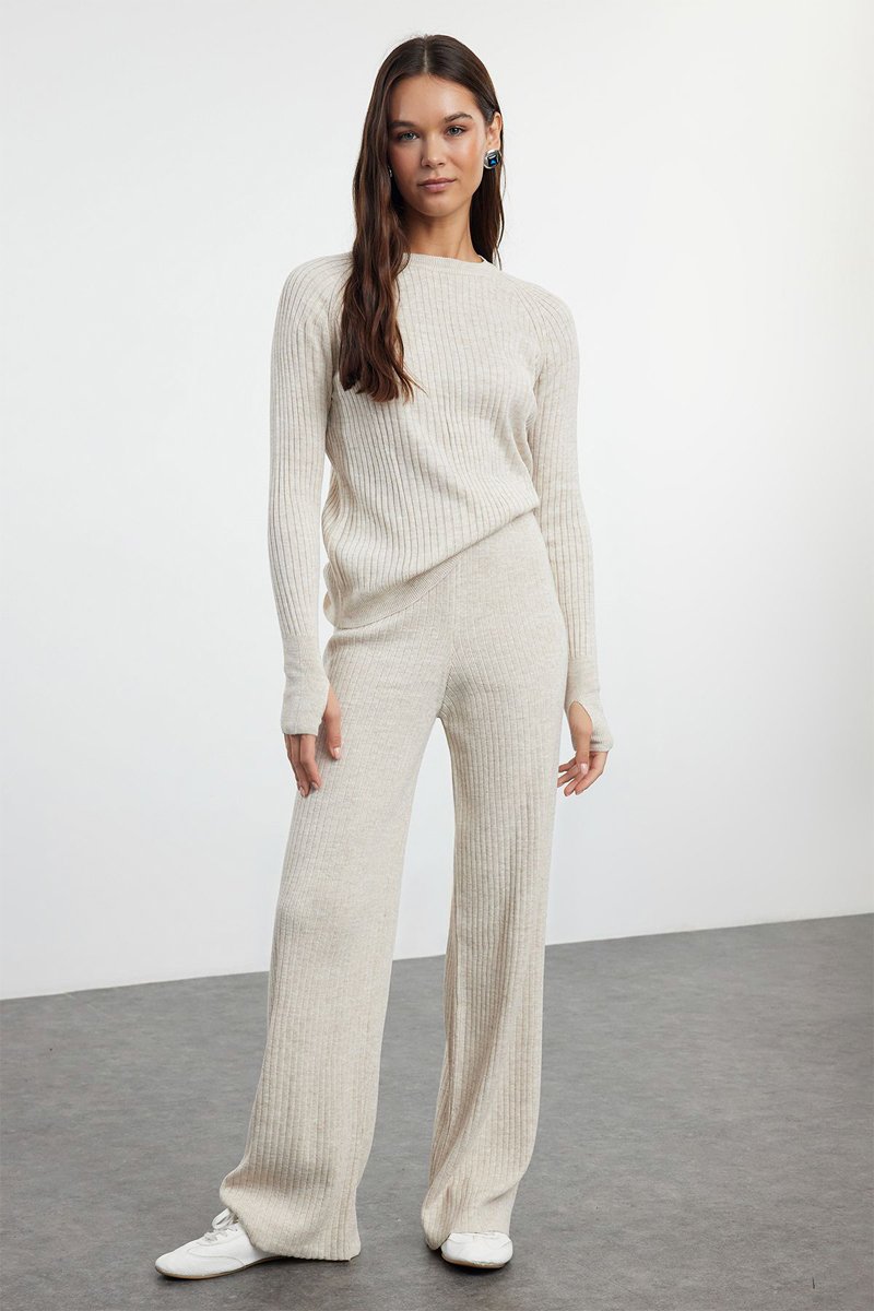 Jersey y pantalón de tiro alto - Beige
