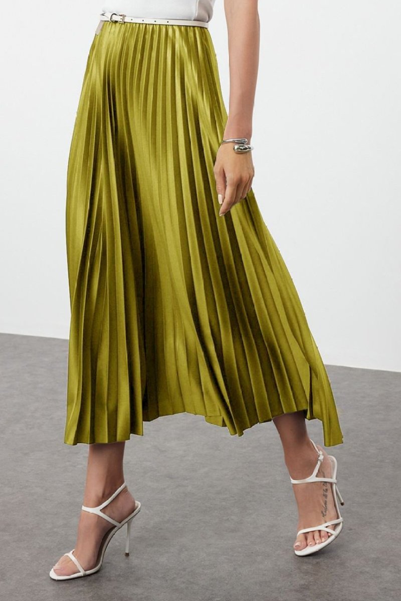 Falda plisada de talle alto - Verde oliva
