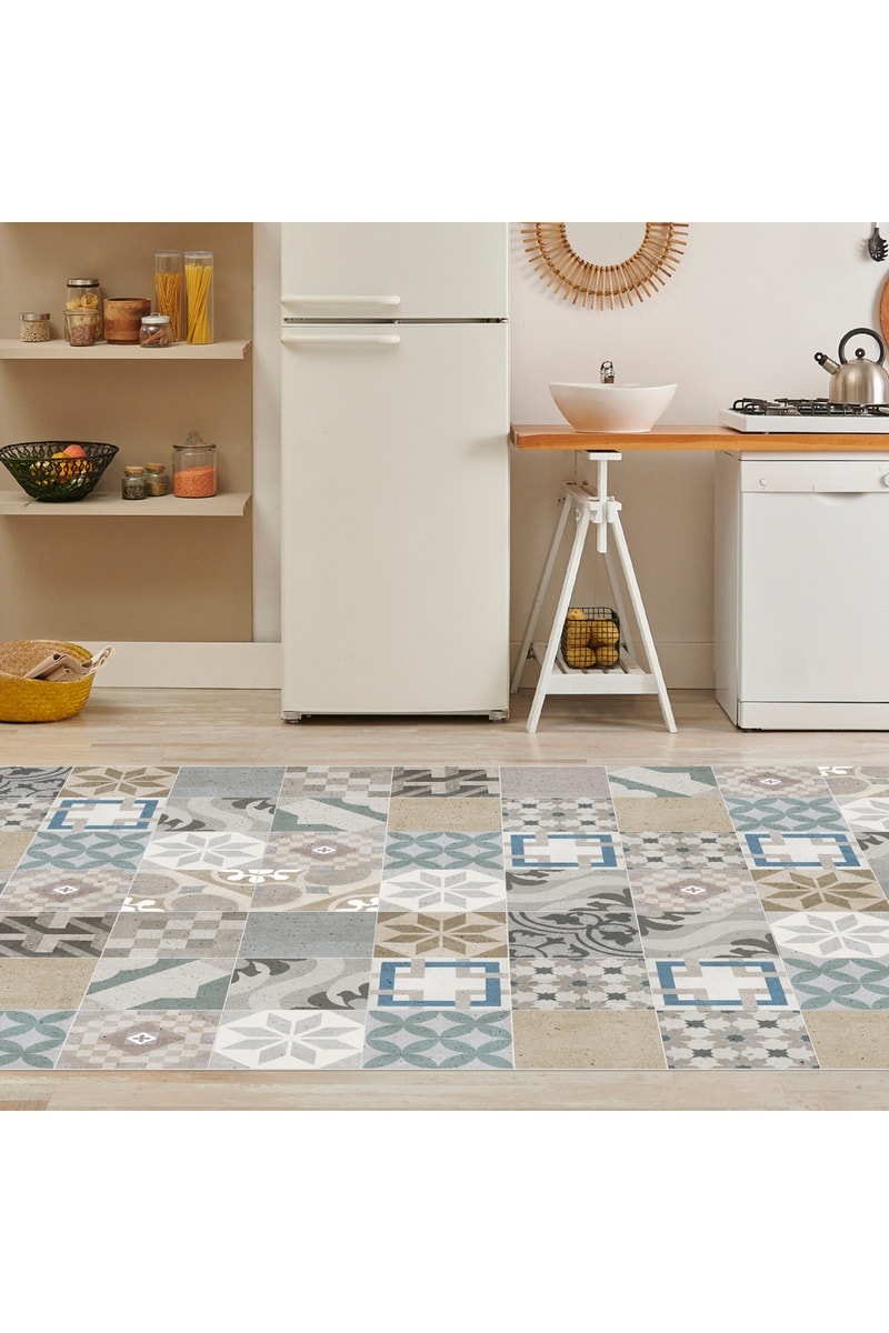 Alfombra vinílica Home tiles vintage - Blanco y gris