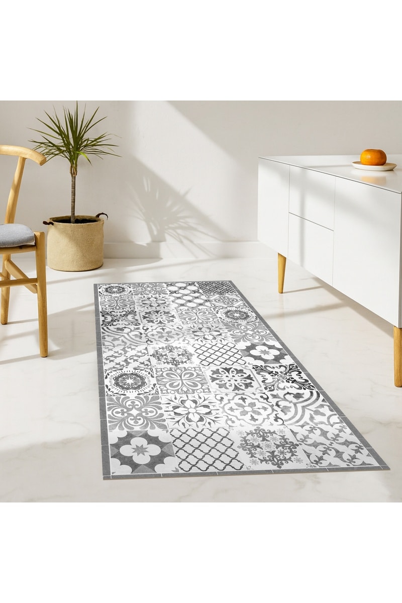 Alfombra vinílica Beautiful Tiles - Gris y blanco