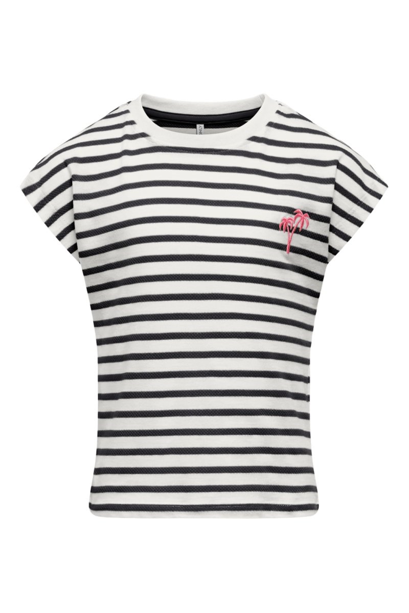 Estampado de palmera bordada delante.