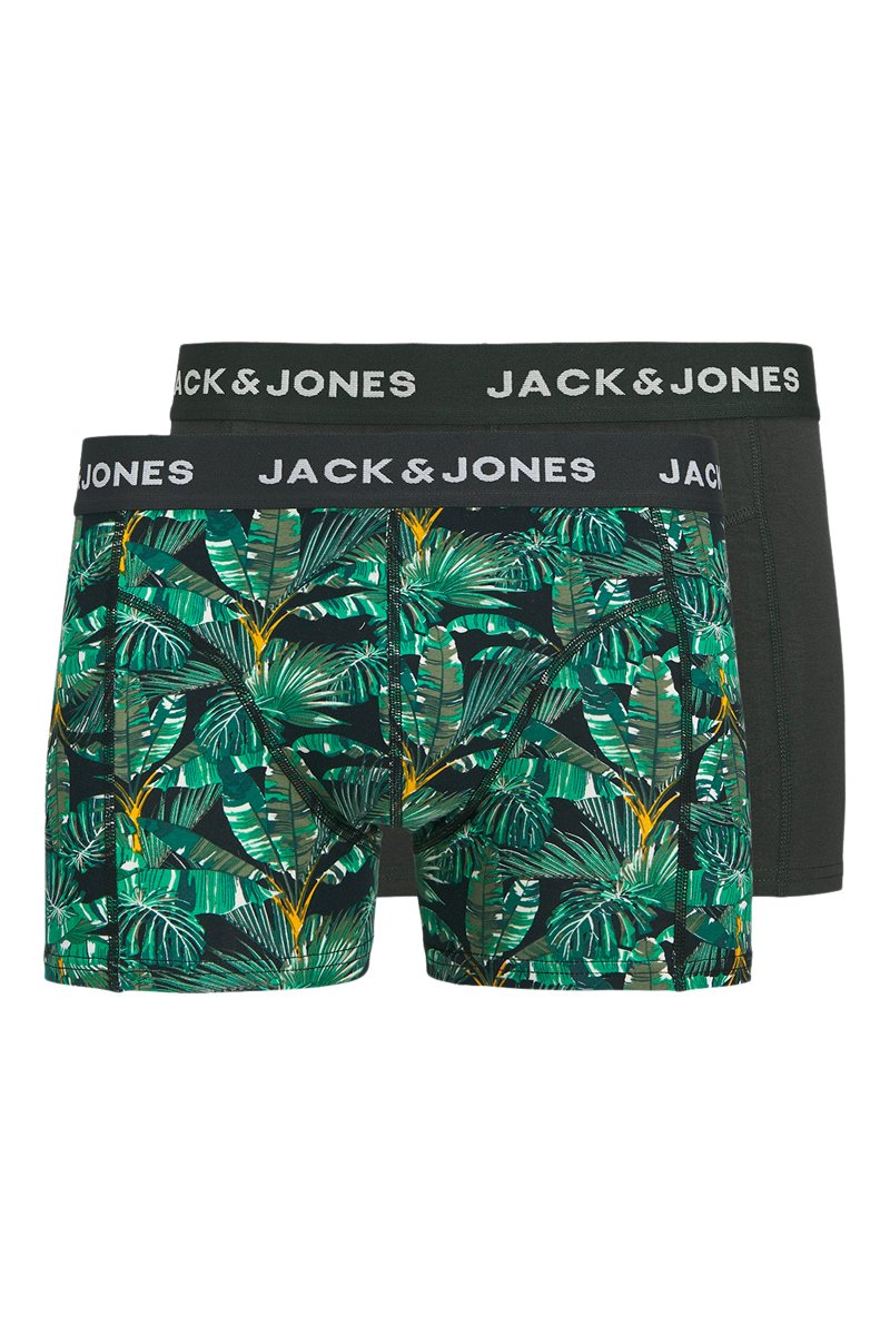 2 bóxers de algodón orgánico mezclado, 1 de ellos con estampado de hojas.