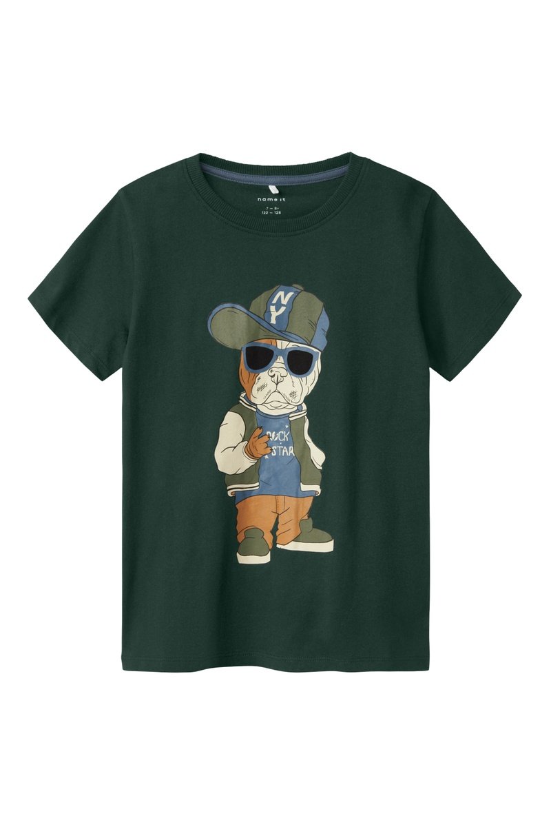 Camiseta de algodón orgánico - Verde oscuro - Name It Kids