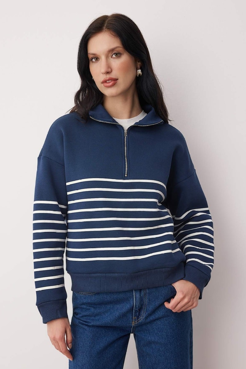 Cuello alto con cremallera.
