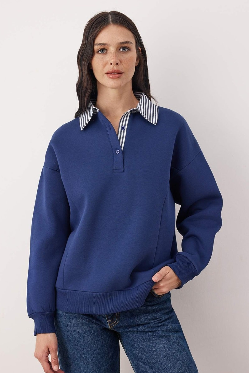 Cuello clásico con botones y estampado de rayas.