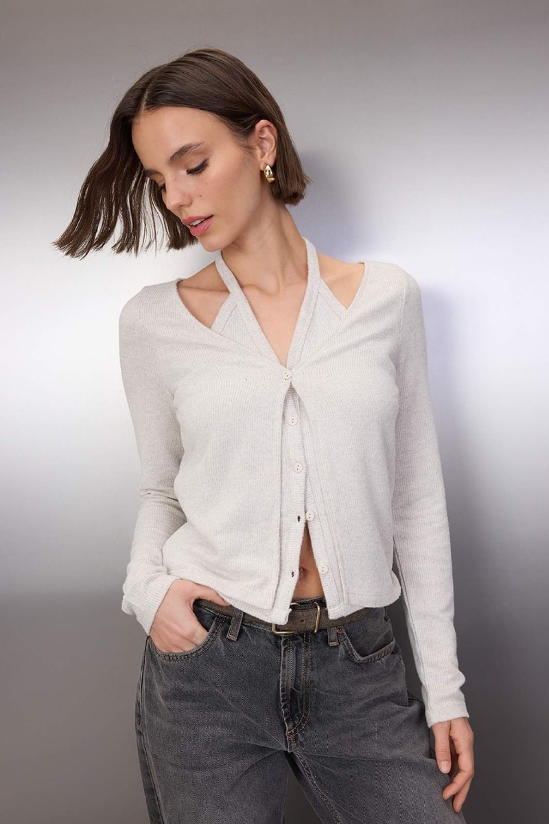 Cárdigan efecto doble prenda - Crudo