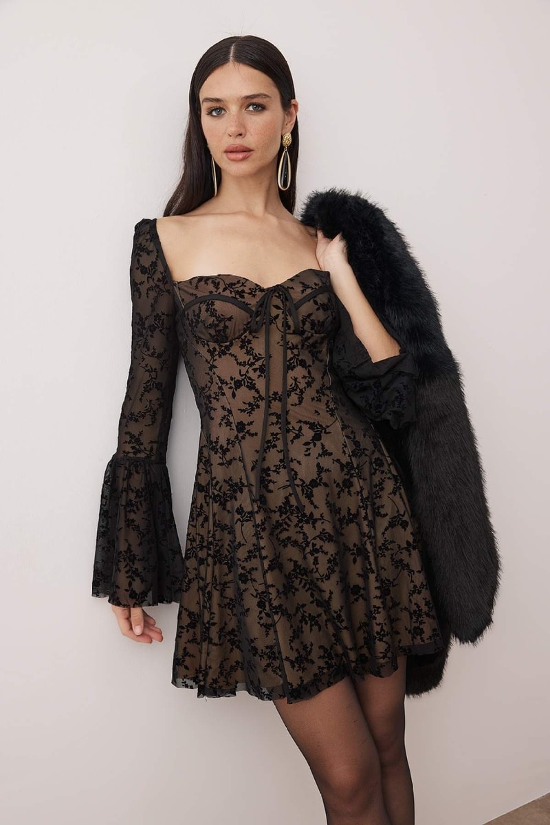 Vestido evasé de encaje - Negro