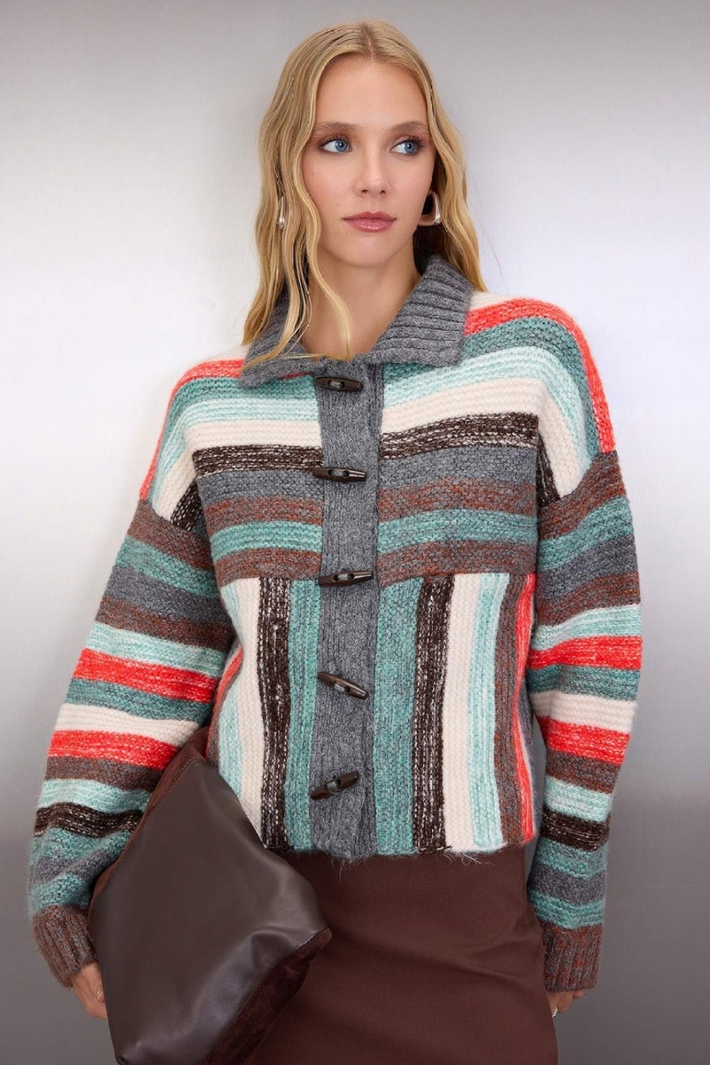 Cárdigan - Blanco y gris oscuro