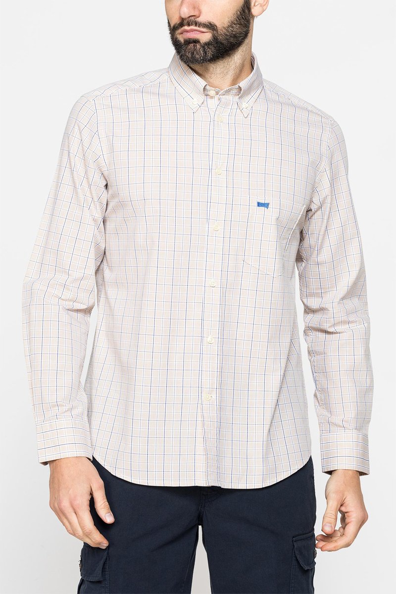 Camisa regular fit - Blanco y beige