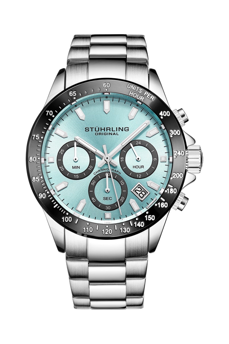 Reloj de cuarzo de acero - Taquímetro y cronógrafo - Plateado y turquesa