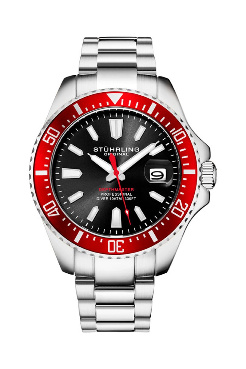Reloj de cuarzo de acero Aquadiver - Plateado y rojo