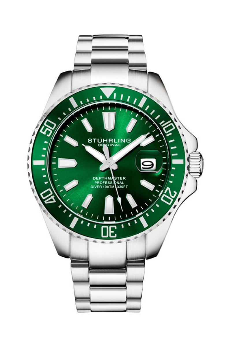 Reloj de cuarzo de acero Aquadiver - Plateado y verde oscuro