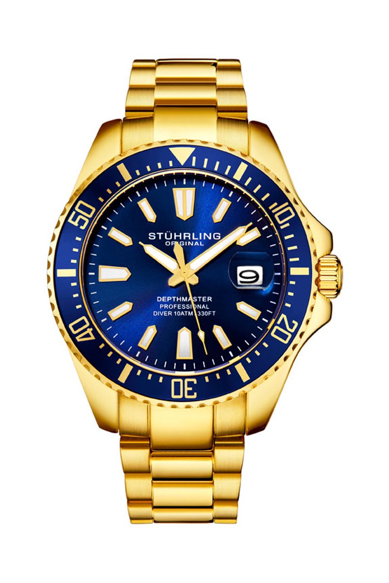 Reloj de cuarzo de acero Aquadiver - Dorado y azul oscuro