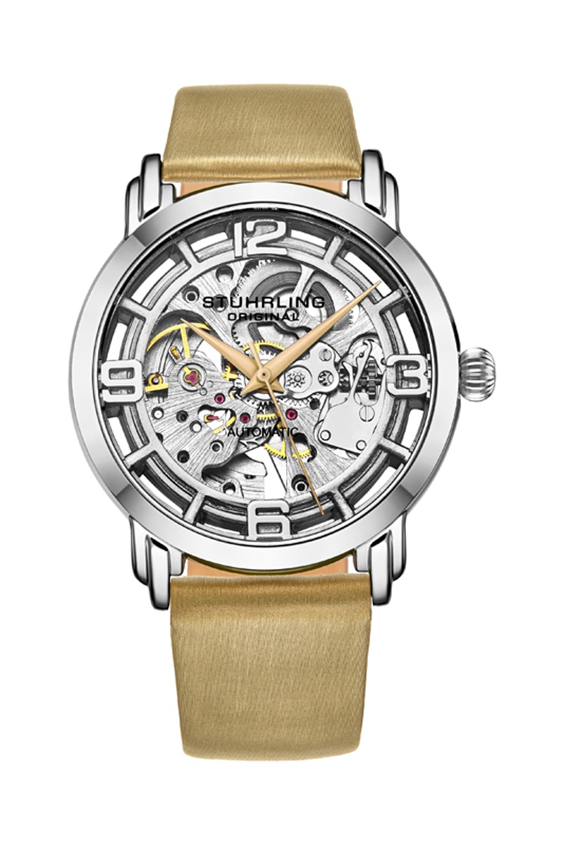 Reloj automático de piel Hong Kong Stührling - Beige y plateado