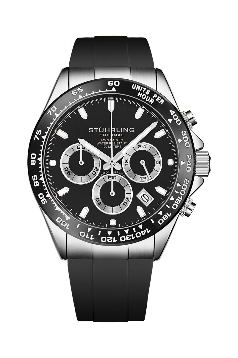 Reloj de cuarzo de caucho - Cronógrafo y taquímetro - Negro y plateado