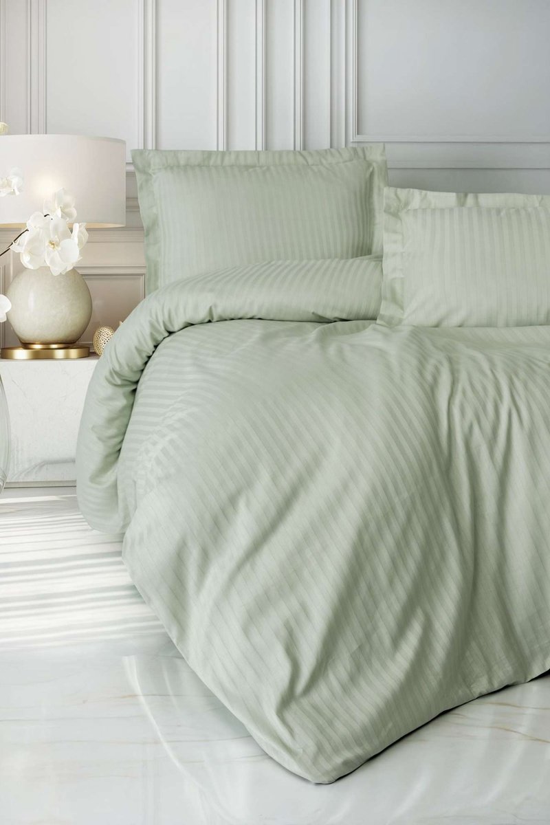 Juego de nórdico de satén de algodón 83 hilos/cm² Stripe - Verde salvia