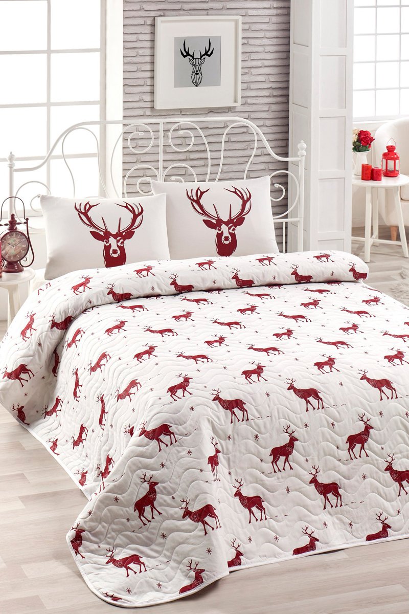 Juego de colcha Geyik - Blanco y rojo oscuro