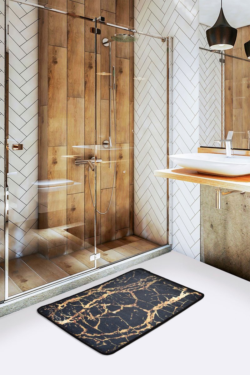 Alfombra de baño - Negro y dorado - 40 x 60 cm